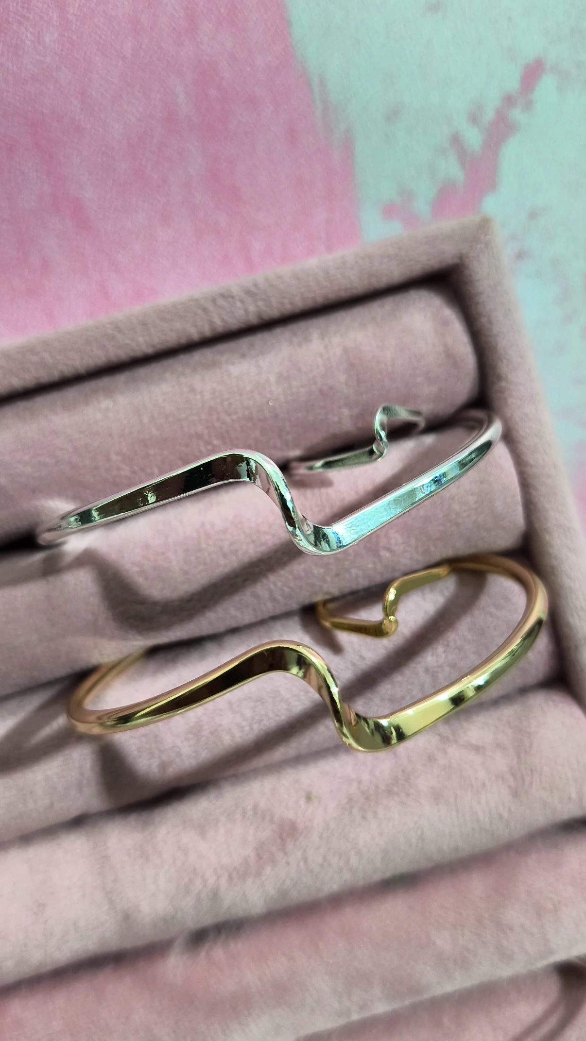بنگل موج آبکاری نقره رنگ ثابت رنگ طلایی و نقره ای