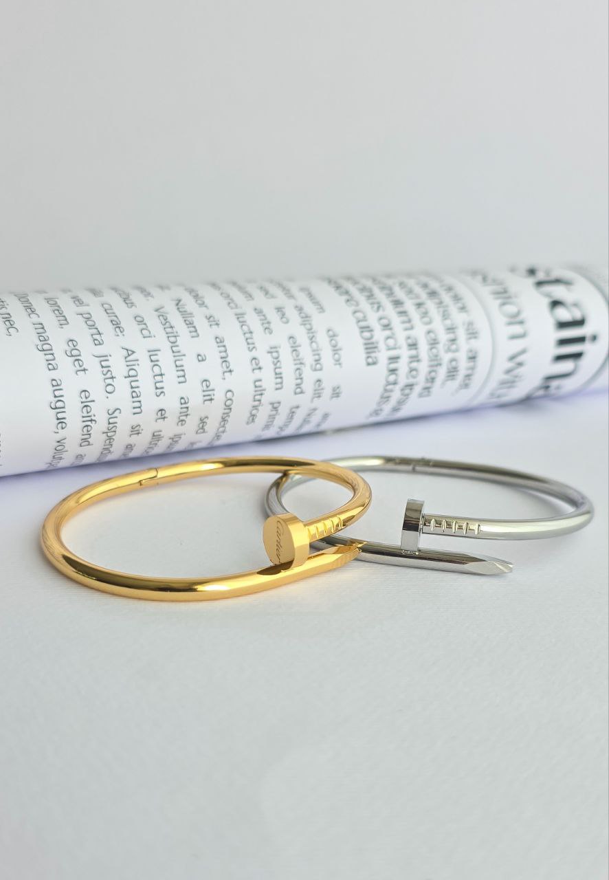 دستبند بنگل زنانه استیل با رنگ طلایی و نقره ای ثابت، انتخابی شیک و ماندگار برای تکمیل استایل شماست. این دستبند از استیل ضدزنگ ساخته شده که باعث ثبات رنگ و درخشندگی طولانیمدت آن میشود. طراحی ساده و مینیمال بنگل، استفاده از آن را برای موقعیتهای مختلف روزمره و مجلسی آسان کرده و بهخوبی با سایر اکسسوریها ست میشود. این محصول گزینهای مناسب برای هدیه دادن به شمار میآید.
